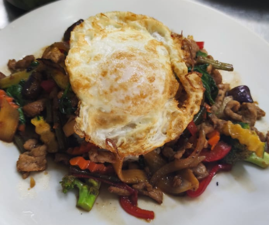 Fried Rice with Basil, Vegetables and Egg