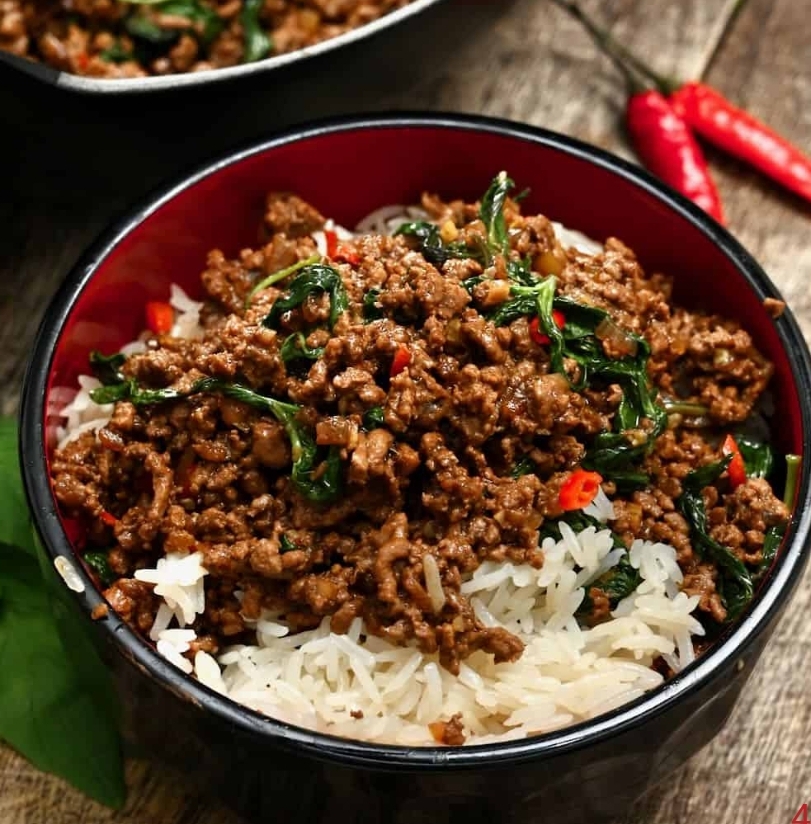 Minced Pork or Chicken, Sautéed with Basil and Vegetables