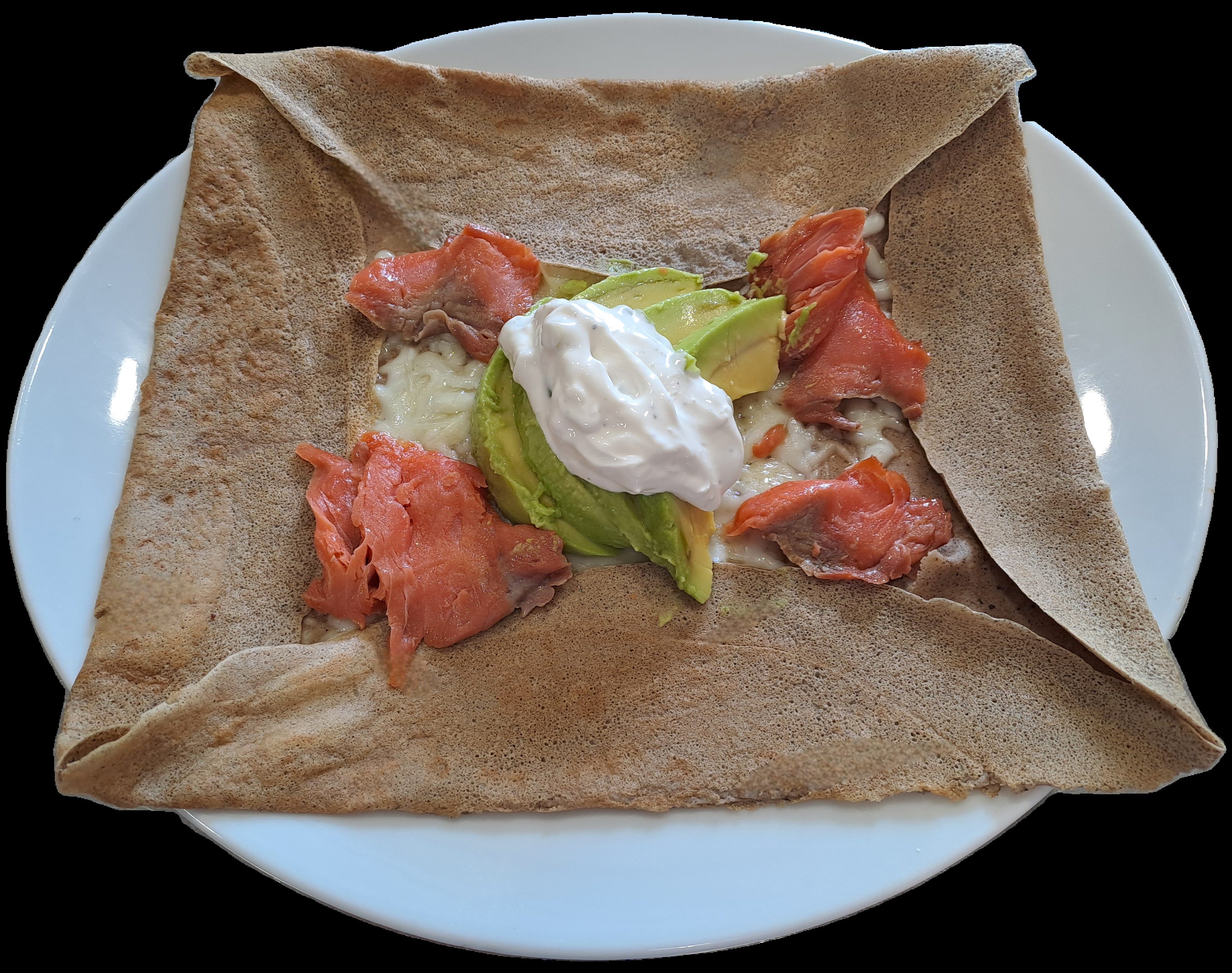 Mozzarella/Emmental, Saumon Fumé, Avocat, Crème Fraiche aux Herbes