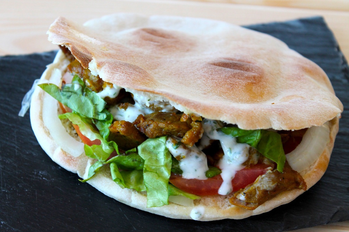 Sandwich Grec, Viande de France (Veau et Dinde) Agneau Mariné Maison, Salade, Tomates, Oignons