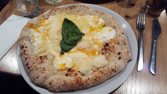 Mozzarella, Viande hachée, guancial ,Oignons rouge, Tomates cerise, œuf.