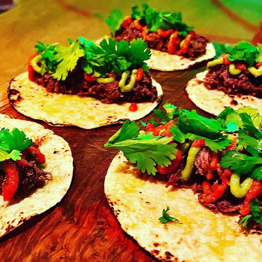 Boeuf, Guacamole, Crème de poivrons, Coriandre