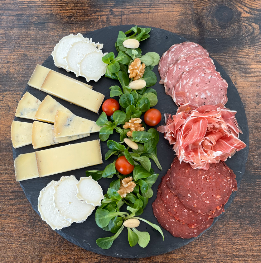 Plus de 250g de fromages et de charcuterie par personne.