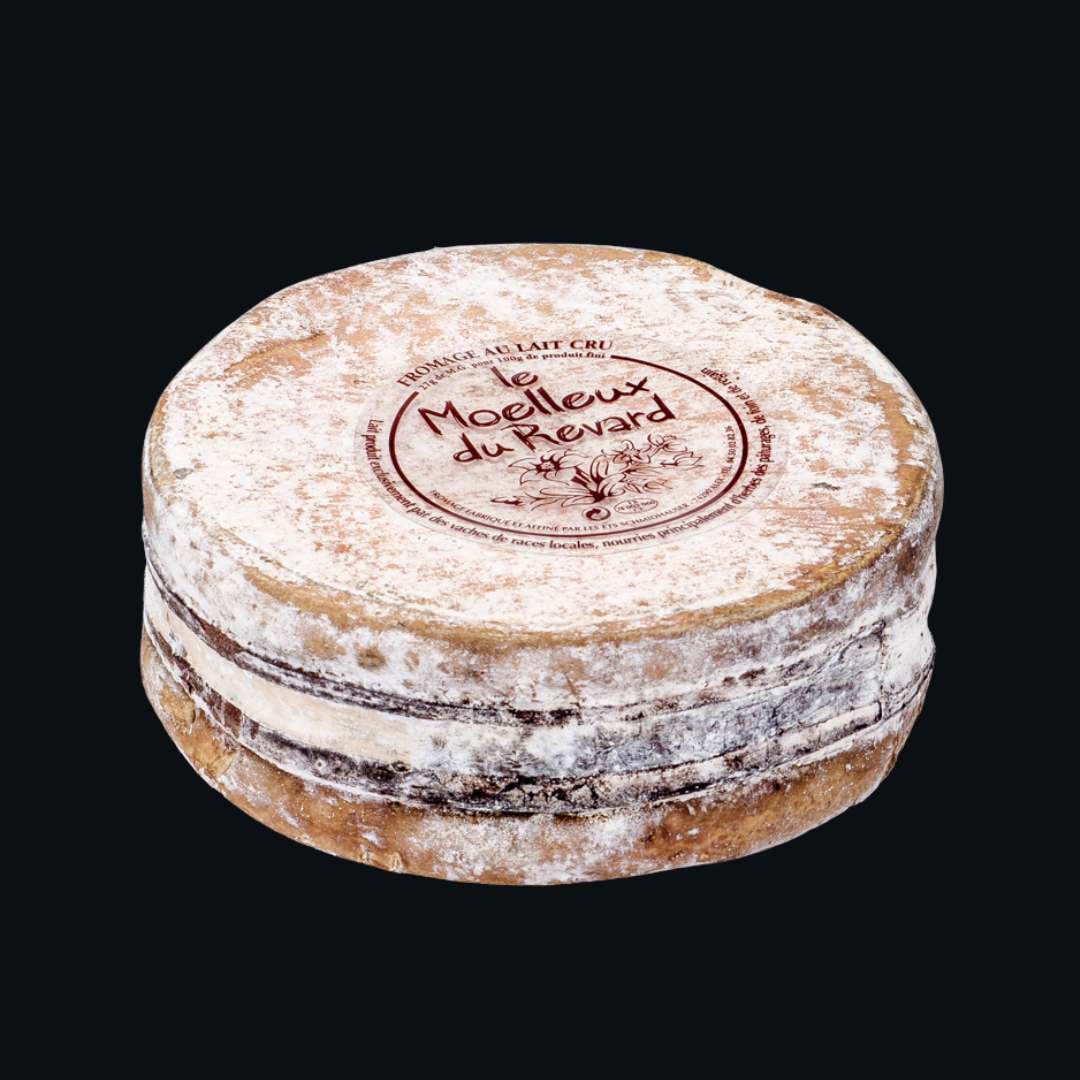Fabriqué au lait cru sur les pentes du Revard au dessus d'Aix-Les-BainsFabriqué, le Moelleux du Revard est un fromage de terroir au goût typé et à la texture fondante. Sa belle croute orangée et sa large sangle d’épicéa cachent une pâte onctueuse aux arômes subtils et légèrement boisés. Suggestion vin : Crozes Hermitage rouge
