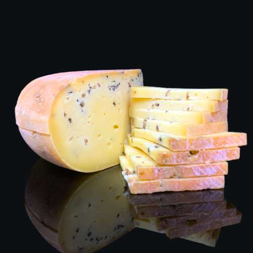 Fromage hollandais au lait cru de vache, il offre une une pâte jeune et souple agréablement parfumée de couleur crème à jaune. La pâte est parsemée de nombreux éclats de truffes.