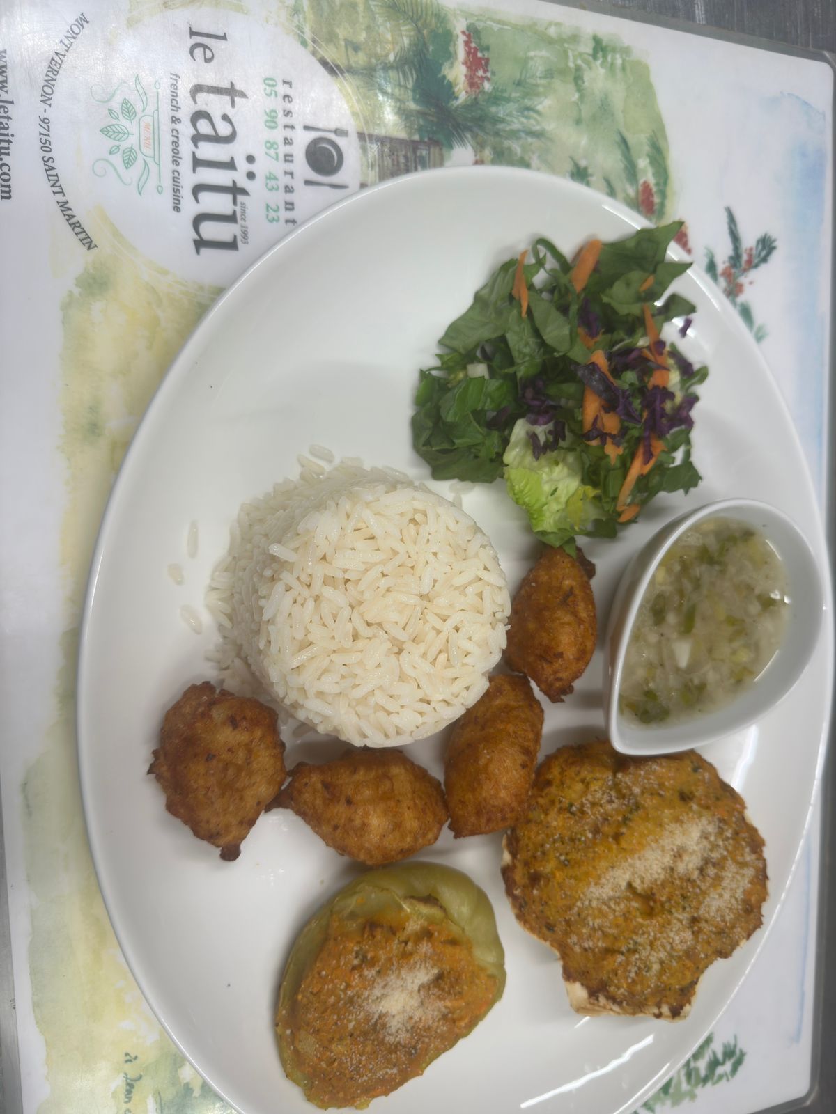 Riz, (Sans Légumes), Crabe farci, Christophine Farcie, Accras de Morue