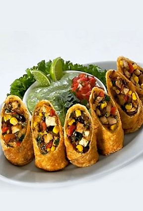 Rouleaux croustillant, Haricots noirs, Maïs, Poivrons, Epinard, Fromage Jack au poivre