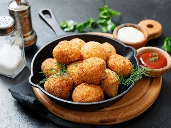 Farce au Gorgonzola, Crumble à l'origan, salade Mixte