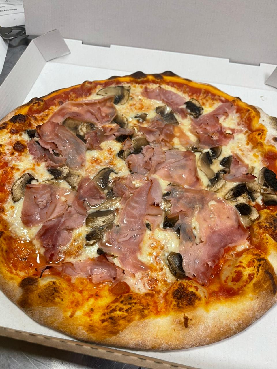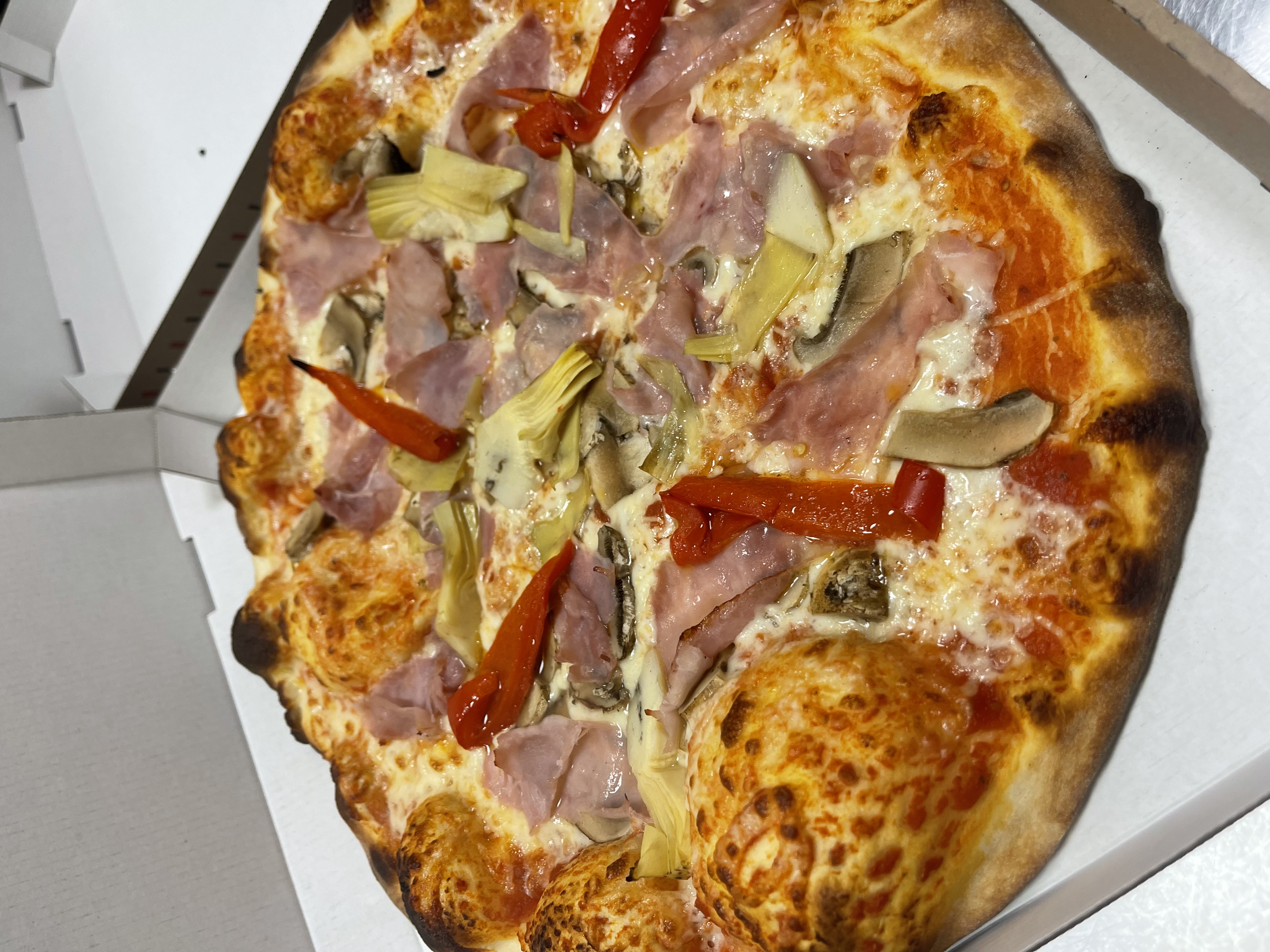Tomate, fromage, champignons, jambon, artichauts, poivrons