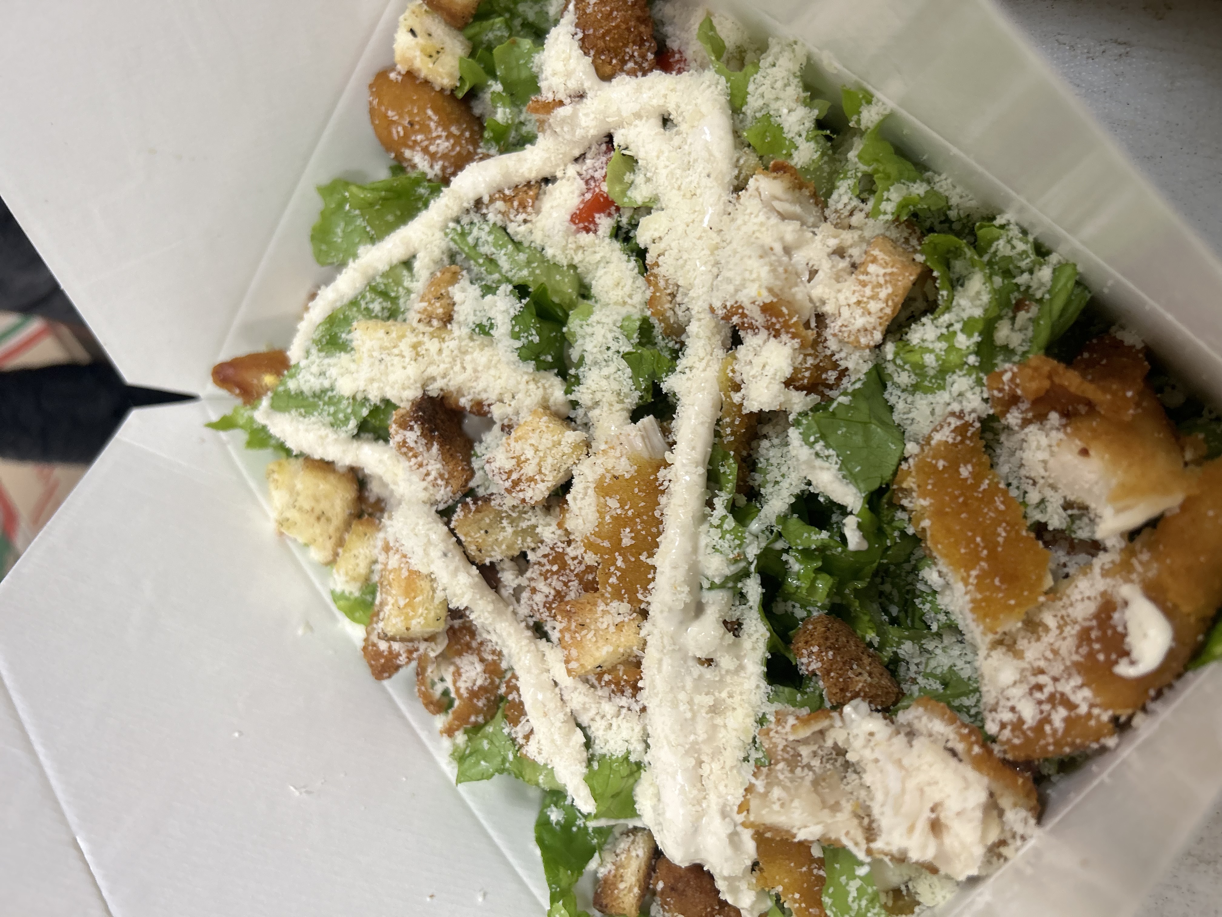 Salade, Poulet pané, Parmesan, Croutons maison, Sauce césar maison