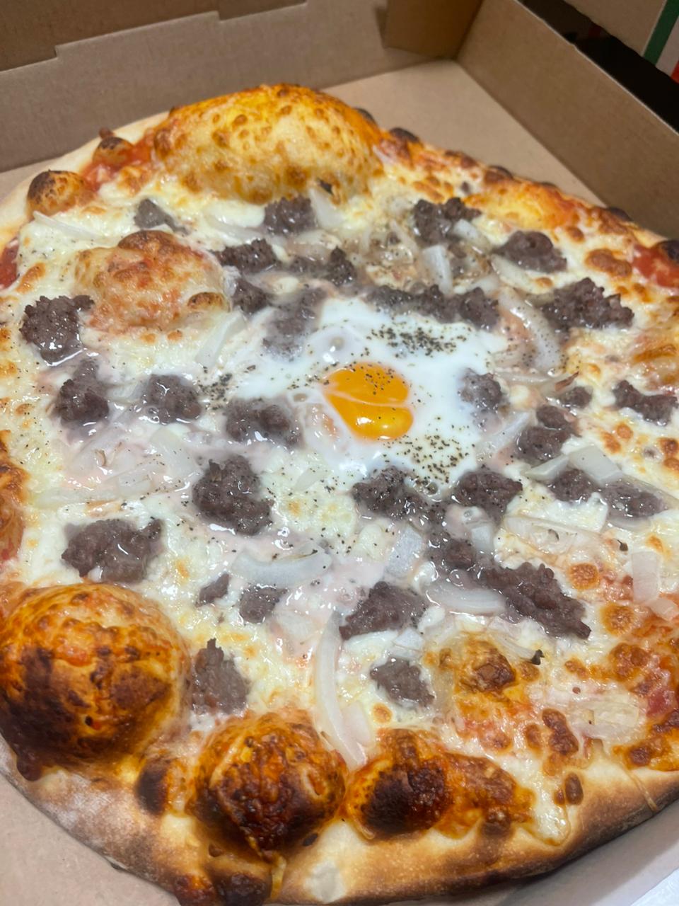 Tomate, Fromage, Viande haché, Oignons , Oeuf