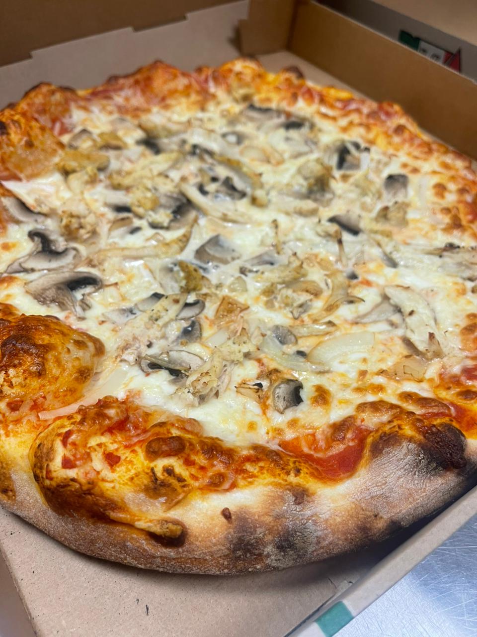 Tomate, Fromage, Poulet, Champignons, Oignons
