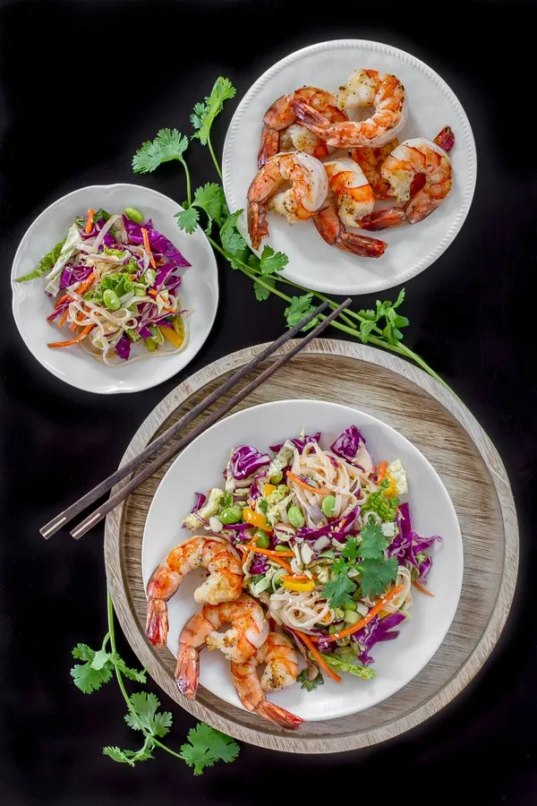 Choux bok choy, Salade verte, Salade de choux, Oignons frits, Cives, Choux rouge, Edamames, Sésame, Coriandre, Cacahuèt…
