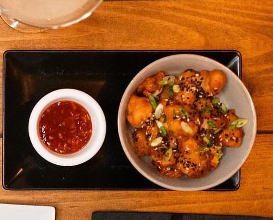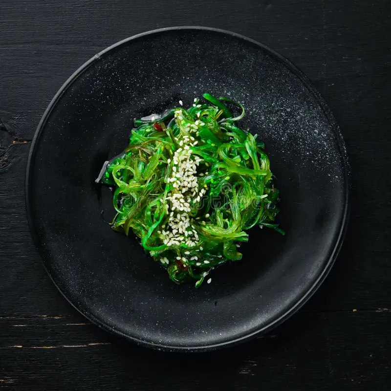 Mangue, Avocat, Oignons rouges, Menthe, Coriandre, Jus de citron, Wakame, Salade, Frites de patates douces