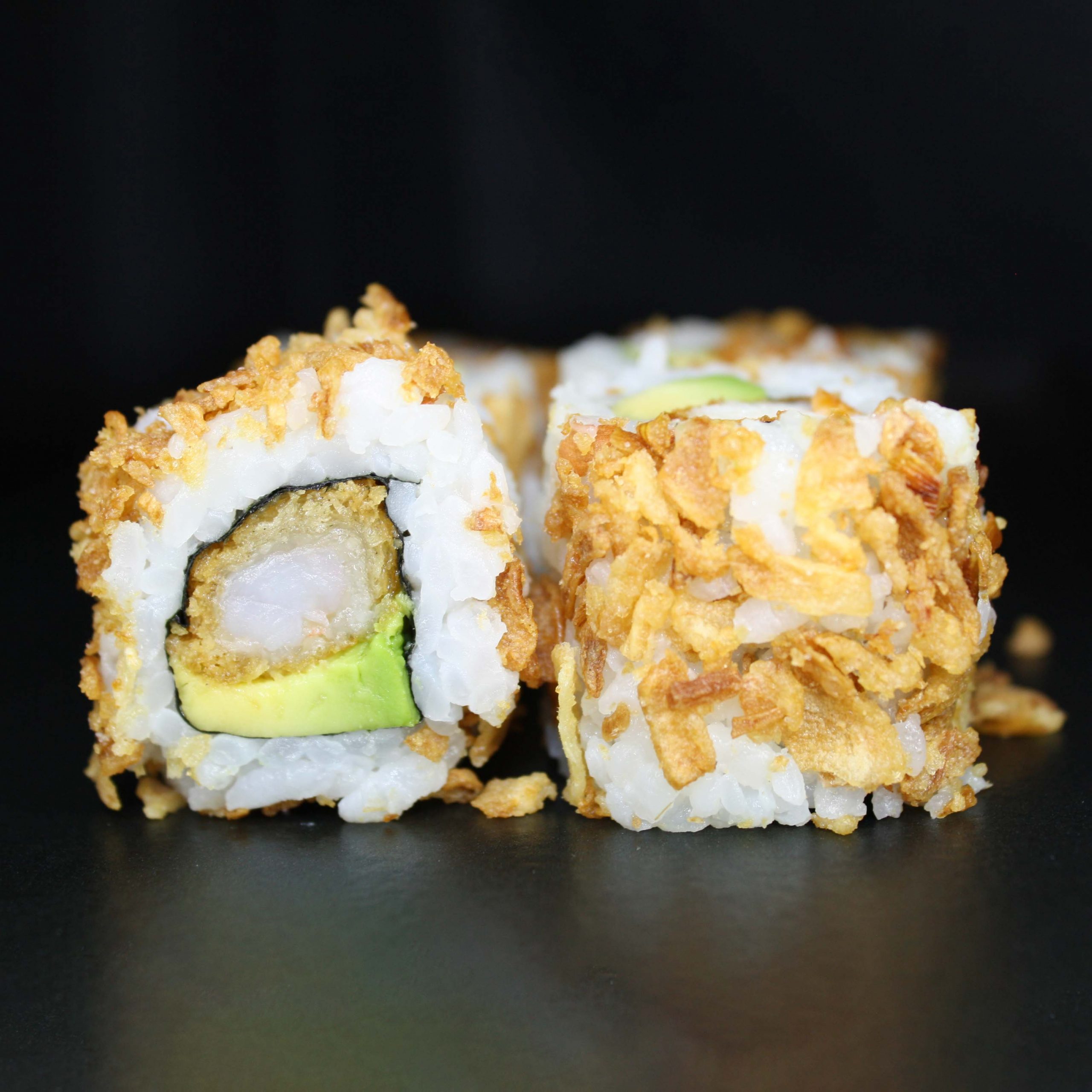 Base california, Mayo épicée, Sauce anguille, Oignons frits ou panko
